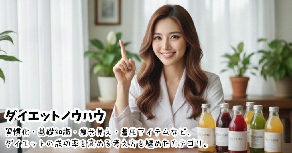 ダイエットを成功させるためには、正しい知識と続けられる仕組みが欠かせません。このカテゴリでは、基礎知識・習慣化・痩せ見え・着圧アイテム・自動計算ツールなど、実践に役立つノウハウを体系化しています。単なるテクニックではなく、「なぜそれが必要なのか」「どうすれば続けられるのか」を設計者視点でわかりやすく整理。迷わず行動できる“道しるべ”として、あなたのダイエットを長期的に支える知識をまとめています。
